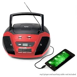 Tyler Portable Stereo MP3/CD Boombox Player TAU102-RD with Mega Bass Sound, Text Display, AM/FM Stereo, USB/SD/MMC and AUX Inputs (Red)