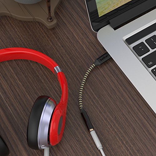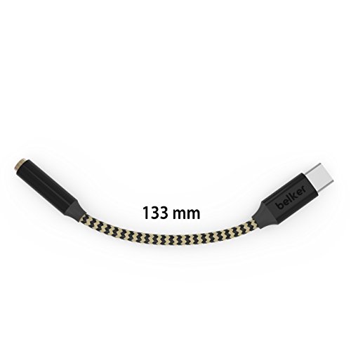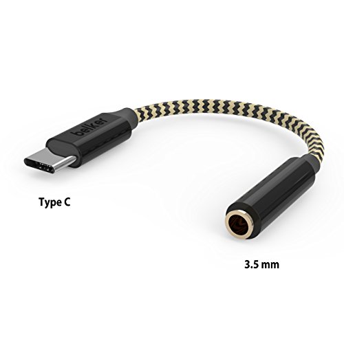 Belker Type C to 3.5mm Audio Headphone Stereo Adapter with Realtek Noise Reduction Chip/DAC Chipset Nylon Braided USB C to 3.5mm Audio Microphone Female Adapter for Moto Z Droid, Pixel 2/ 2XL and A