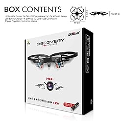 • INCLUDES: 1 x U818A HD+ RC Quadcopter with 1280x720P HD Camera, 1 x 2.4G Transmitter with LCD Display (4xAA batteries NOT INCLUDED), 2 x 3.7V 500mAh Li-Po Battery (1 bonus battery included), 1 x 2200mAh BONUS POWER BANK, 1 x 4GB Micro SD Card, 1 x USB Card Reader, 1 x 2-Ch Battery Charger, 4 x Extra Blades, 1 x User Manual