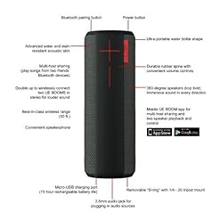 Colorful acoustic skin with plasma coating makes UE BOOM water and stain resistant, As much as 15 hours of battery life
