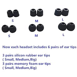Each headset includes 6 pairs of ear tips 3 pairs different sizes silicon rubber ear tips and 3 pairs memory foam ear tips you can choose which ear tips you pefer to also the best design of earphone comply to ergonomics great fit for ear canal and the latest fashion design makes pilots cool