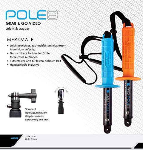 FEATURES of the UKPro Pole 8 Camera Pole Ideal for bodyboarding, surfing, or some other activity where you wish to have a low profile whilst adding a bit more class for your footage All sports capable, meaning you’ll take awesome shots snowboarding, surfing, skydiving, water skiing, snow skiing, skating, grocery shopping, truly wherever you wish to have The rubber grip holds have super visible colors, making finding them in the snow quick and easy Constituted of lightweight, high-strength anodized aluminum This can be a standard attachment point for the GoPro camera and includes knob Full rotation adjustment