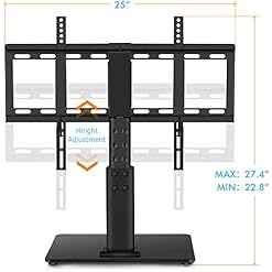 – Made of heavy duty steel stand and thick enough tempered glass base, this stand easily hold your televison with safety and stability.