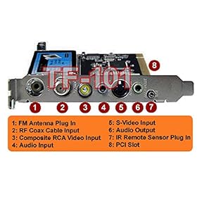 This PCI TV video capture card is featured with RF coax input, composite RCA input, S-Video input, 3.5mm mini input and a FM antenna input.