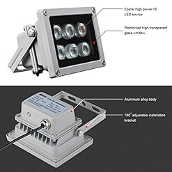 Greatly toughen the performance for night vision cameras. Built-in 6pcs high power LED lights, view angle 90 degree, IR light distance about 65ft. The IR illuminator assist producing better night vision image,best work with wide angle IP cameras and CCTV cameras.