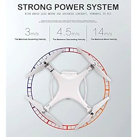Intelligent Li-Po battery with a full capacity of 5400mAh enables up to approx.19 minutes flight time. Built in more than one safety protection system against to over-charging, over-current, over-discharging. Combine professional motor, Maximum Ascending Velocity 3m/s,Maximum Vertical Velocity 4.5m/s,Maximum Horizontal Speed 14m/s