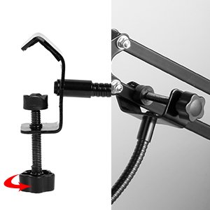 STRONG & STABLE CLAMP — Special designed clamp can be fixed tightly to all kinds of microphone arms. With a fabric mat or rubber washer on it never damage your furniture or devices.Swivel mount for easy installation.