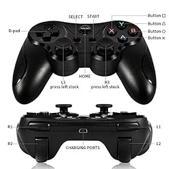 TPLGO Wireless Controller for PS3 Controller, Blutooth Double Shock Sixaxis Remote Gamepad for Sony PS3 Playstation 3 with 6 Feet Charging Cable