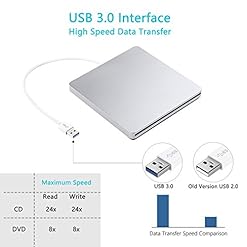 【UPGRATED USB 3.0 ,SAVE 1/3 TIME】.-The dvd drive external is updated version which specially designed to bring faster data transfer speed and stable performance compared with USB 2.0 and USB 1.0,which means it can save 1/3 time to use.A better choice than the USB 2.0 and USB 1.0.
