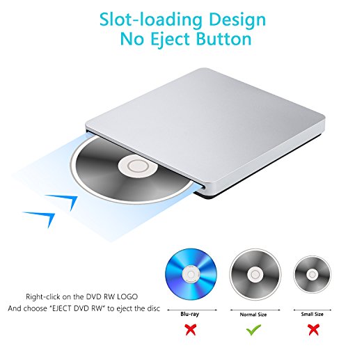【AUTO SUCTION DESIGN】-No Eject button.Just right click “DVD RW ” on the mouse and choose ” EJECT DVD RW ” to eject the discs.All drives are tested and 99% can eject.But if you can’t eject the disc,please plug the cable out and use it in another computer to eject.