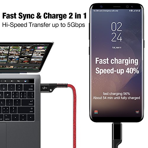[HI-SPEED SYNCING & CHARGING]: 5Gbps data transfer speeds-That’s an HD movie or over 1000 songs each and every 5 seconds. USB C to USB 3.0, 56k Ohm compliant, which ensures a protected charging at 3.0A Maximum, Charges phones and tablets with USB-C ports at high-speed.