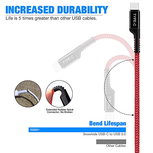 [EXTREME DURABILITY TYPE-C CABLE]: Hard and soft PVC connector material and extended rubber spiral connector technology guarantee a long service life for type c usb devices. Pluggable 10000+ times, 5000+ bend lifespan, Life is 5 times greater than other USB-C cables.
