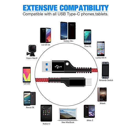 [USB C EXTENSIVE COMPATIBILITY]: This USB Type C (USB-C) to Type A (USB-A) Cable works well with any USB-C powered devices such as Samsung Galaxy S8 Plus, LG G6 G5 V20 V30, Google Pixel /Pixel XL,Google Pixel 2, Nexus 5X 6P, Lumia 950 /950XL, HTC 10, Moto Z2 Play/Moto Z /Z Force, Huawei P9 /Honor 8 /Mate 9, OnePlus 5 3T 2, Samsung Galaxy Note 8, Galaxy S8, GoPro Hero 5 and Nintendo Switch.