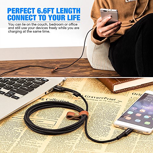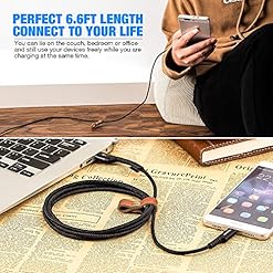 Tangle-free Double-braided nylon cable, more durable, flexible and sturdier than the normal cables. With the implausible 6.6ft length, you’ll lie on the couch and use your devices whilst you are charging at the same time.