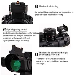 Fit all 20 mm weaver and 3/8 inch dovetail rails , Durable all Metal Housing, with Dual – Layer Coated Lens.