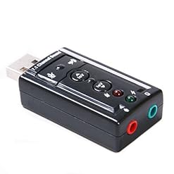 Plug the Sound Adapter into your USB port, and then plug your headphones into the Adapter. Ta-Da! 7.1 Channel sound without the investment in a whole set of speakers! Tired of trying to stretch your cables around the back of your computer? Plug this Adapter into a USB port on the front, and use the headphone jack (for output) or the microphone jack (for input). The USB Virtual 7.1 Channel Sound Adapter is a highly flexible audio interface which can be used either with desktop or notebook systems. Comes bundled with Xear 3D Sound simulation software, and turns your stereo speaker or earphones into a 7.1 channel environment! USB2.0 Full-Speed (12Mbps) Specification USB HID Class Specification 1.1 USB Audio Device Class Specification 1.0. USB bus-powered, no external power required. Connectors: USB Type A, Stereo output jack, mono microphone input jack Xear 3D virtual 7.1 channel sound simulation software for Windows XP / Vista is included Functions keys: Microphone-Mute, Speaker-Mute, Volume-Up and Volume-Down LED indicators: Microphone-Mute Status, Activity Plug and Play. No drivers required for Windows 98SE / ME / 2000 / XP / Server 2003 / Vista, Linux, MacOS Dimensions: 2.25″ x 1.0″ x .50″ Package Includes: — 1 x 7.1 Channel External USB Audio Sound Card Adapter — 1 x Software Disc for Xear 3D