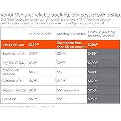 LOWEST TOTAL COST – Venture includes 6 months of FREE tracking and offers the lowest cost and most reliable tracking on the market. Renew for as low as $5 a month. See the comparison chart in photos for details.