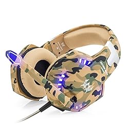 【COOL STYLING】 Unique camouflage patterns & metal lock combining with the glaring LED lights designed on the ear cups and microphone make this item extremely eye-catching and custom-built for gamers.