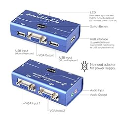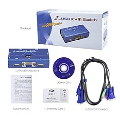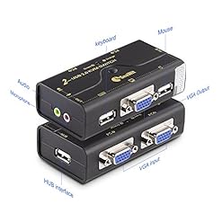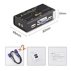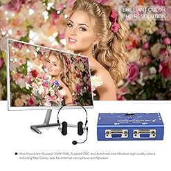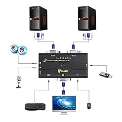 Console Controls 2 Computers/Servers with One Set of Keyboard, Mouse and Monitor and Support Audio and Microphone Switch with Interfaces for Speaker and Mic.