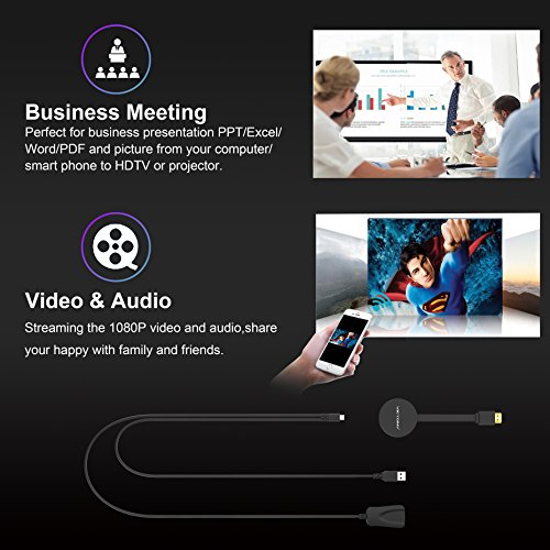VICTONY Wireless 1080P Mini Display Dongle Receiver Sharing HD Video from Projectors Cell Phones Tablet PC Support Airplay DLNA Miracast HDMI TV/Projector Stick
