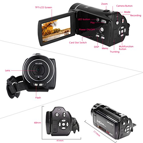 ORDRO HDV-V7 Camcorders New Advantages: 1920*1080P 30 FPS digital video camcorder. 3 inches TFT-LCD screen(supports 270rotation). 16X digital zoom (not reinforce optical zoom). It supports standard tripod and SD/SDHC card (32GB max, our package does not included tripod and SD card).