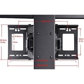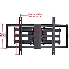 The VideoSecu full motion articulating mount MP830B is designed for large size LCD LED Plasma flat panel screen display. Constructed with high gauge steel, it handles screens as much as 176lbs. This articulating mount supports TV VESA as much as 900x600mm. Dual arm design allows 140 degree side-to-side swivel (The max degree is depending on your display size), 15 degree forward and backward tilt and extends the flat panel screen as much as 25″ from wall for perfect view positioning and reduce glare. The wall plate is 22.8″ wide, allowing it to be mounted into two standard wood studs 16″ apart. Post installation level adjustment allows 6 degree rotation for perfect level in different view angles. How to verify the mount compliance with your selected display? First, the weight of your display will have to be lower than 176lbs. Next, mounting holes distance at the rear of TV will have to be lower than 36.6″ (930mm) horizontally and 25.1″ (640mm) vertically. Last, Your TV will have to be no less than 36.6″(W) x 25.1″(H) Differently, you’re going to see the bracket.