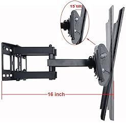 Minimum mounting profile 4.3″, extends to 16″; Adjustable tilt 15 degree forward or 5 degree backward; Swivel 160 degrees
