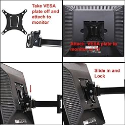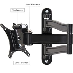 This adjustable articulating arm swing LCD TV monitor wall mount can extend out as much as 14 inch, and folds flat against the wall. Aluminum alloy construction supports LCD monitor as much as 33 lbs. Its classic black finish, 3 pivot points provides 0-20 degrees forward tilt, 180 degree swivel, and max 14 inch extends for virtually limitless adjustment. The VESA plate will also be taken off to connect the display for simple installation. This two-link arm design offer elegantly search for offices, conference rooms, merchandising displays, hotel rooms or any room in the home. VideoSecu modern design mount, please report to Amazon in case you receive a mount without VideoSecu logo.