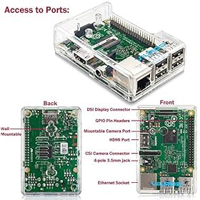 Raspberry Pi 3 (RPi3) Model B Quad-Core 1.2 GHz 1 GB RAM [LATEST MODEL 2016] • Raspberry Pi Enclosure Case (Clear-Transparent)–Includes Mounting slot and screws for a raspberry pi camera module (the camera module is not included in this kit)