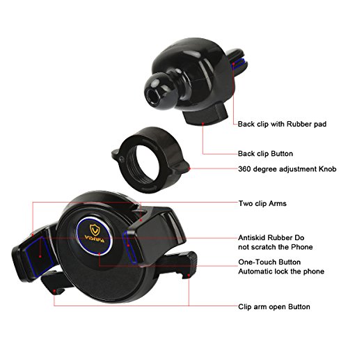 ✅ [ONE HAND OPERATION]: Back clip firmly holds the holder to the car vent. Just one hand put your phone on the holder ,When the cell phone touches the One – Touch Button, The holder arms automatically clamp the phone. Also just one hand get your phone !