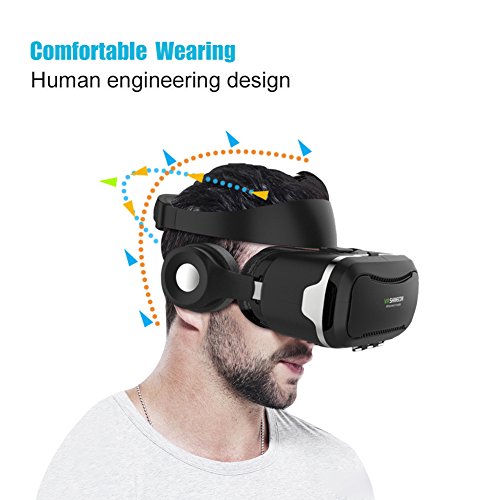 No VERTIGO FEELING- The latest 4th generation VR headset with upgraded PMMA lenses for high definition quality, also effectively blocking dazzle, build in stretchable stereo headphone with great sound quality, provides you a real 3D immersive IMAX size screen private cinema