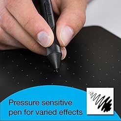 Battery-free, pressure sensitive pen helps you to attract thicker and thinner lines depending on how hard you push at the pen