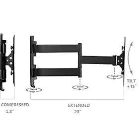Low Profile mount retracts to 1.8″ to save space, Extends 20″ from the wall. Effortless 180° swiveling capability gives you the best view from any seat in the house