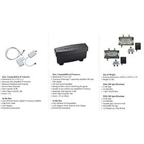 In The Box – Includes Winegard Boost LNA-200 digital TV antenna amplifier, 110v adapter, power inserter, hose clamps and printed documentation.The Boost XT preamplifier works with any passive/non-amplified antenna.