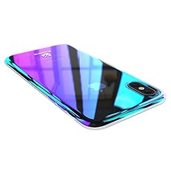 FLOVEME iPhone X XS Case, Luxury Ultra Thin Gradual Colorful Gradient Change Color Lightweight Electroplate Bumper Anti-Drop Clear Hard Back Cover Support Wireless Charging, Transparent Purple