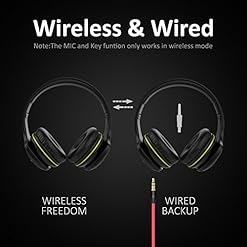 [Wireless and Wired Headphones]The built-in battery enable wireless playback and the audio wire Enhance for wired mode.