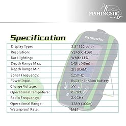 Test depth reading ranges from 2 to 135ft (45 meters) in 1/10 precision. 2.4GHZ operational RF frequency guarantees wireless sonar operational distance at max. 328ft (100 meters);