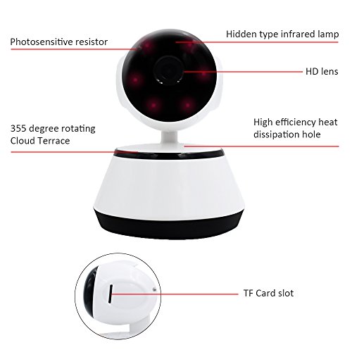 No wiring, plug and play, convenient and concise; Quick and versatile installation: Vertical, Wall Mount or Ceiling; Very best for pet / baby monitoring, business monitoring, security, vacation home monitoring, remote live video streaming by phone, tablet and PC any where anytime by the use of WIFI.