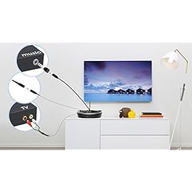 Easily paired to multiple headphones by clicking the auto scan button on the headphones. Multiple headphones can share the same transmitter.