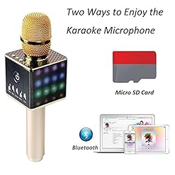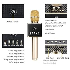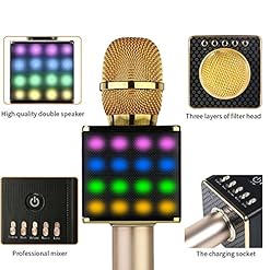 Portable Wireless Karaoke Microphone: Handheld bluetooth microphone, a mini home KTV for music playing and singing at anytime. Download the singing apps and you can sing along.Easy to connect to a cell phone(iphone and android). Advanced Technology: Aluminum-magnesium alloy shell, Professional tuning system, Three-layer high-density 360-degree noise reduction, Intelligent mixing chip, High-quality condenser microphone with dual Hi-Fi speakers 5W*2.