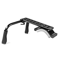 Modular shoulder rig in keeping with ARRI same old dovetail. Black Leather ergonomic grips. Threaded holes on Shoulder Pad and Protection Dovetail for attaching equipment reminiscent of screens, rod clamps, cheeseplates, battery mounts, and more.