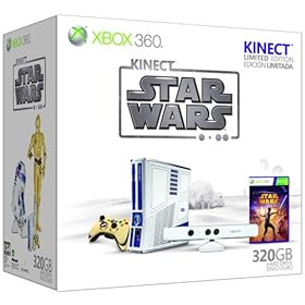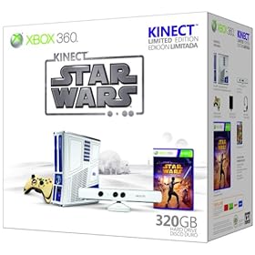Xbox 360 Bundle: Bring the Star Wars characters you know and love into your living room with this custom R2-D2-themed Xbox 360 console with custom sounds. Features C-3PO as an unlockable character for the Dance Mode in the Kinect Star Wars game.