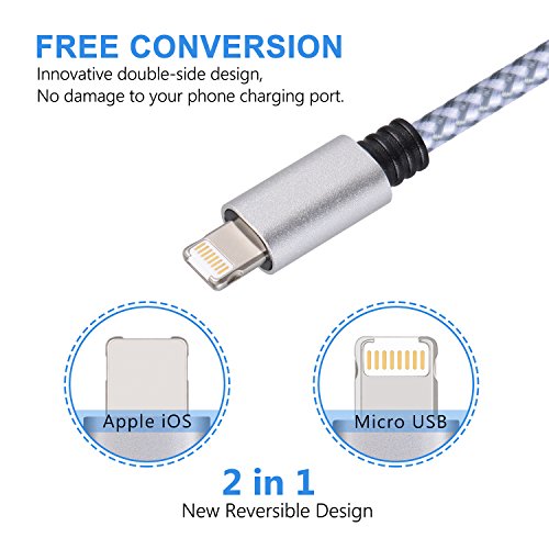 2 in 1 Design: Integrate Micro USB and lightning connector into one plug. One charging cord can meet both iPhone and Android phones’ requirements. It is more convenient for daily use or on the trip
