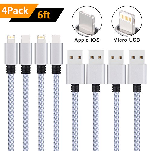 6FT Long Cables: Conveniently charge your phone while in bed or sofa. 6ft long cables allow you to easily charge even with a far power source. 4 packs cables can meet your multiple uses.