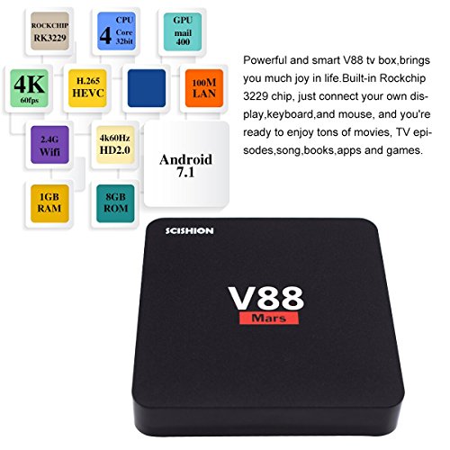 [4K Android 7.1 TV Box] YAGALA V88 Mars adopts the fast and powerful Android 7.1 operation system which has a better compatibility of software, games and application programs. Support 4K resolution and H.265 VP9 decoding, not a single detail will be missing while you enjoy all your favorite movies, food shows and entertainment programs.