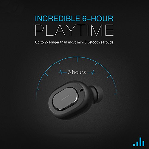 [LONGER BATTERY LIFE, LONGER PLAYTIME]: Built-in high-performance rechargeable Lithium-poly 55 mAh battery, enjoy up to 6 hours of music time and 8 hours of talk time. Comes with a round EVA case which is convenient for you to hold the earbud and USB charger wherever you go. 30 DAYS HASSLE-FREE RETURN POLICY and ONE YEAR WARRANTY – your purchase is totally RISK-FREE. Note: Only 1 earbud is included, not a pair.