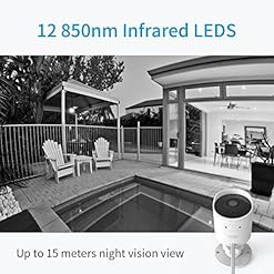 Its enhanced night vision features 12 850nm infrared LEDs providing a night time viewing distance of up to 50 feet.