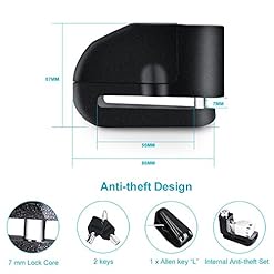 The Disc Lock Alarm sound is in a position to reach to 110 db, the measure of the locking pin 7 mm that allows us to set at 360 degrees, and it is conceivable to fix it in any position