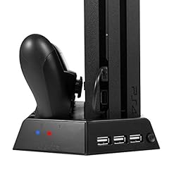 4 in 1 Design: Game Console Vertical Stand+ Cooler Fan+ Dualshock Charging Station + USB HUB Charger Ports