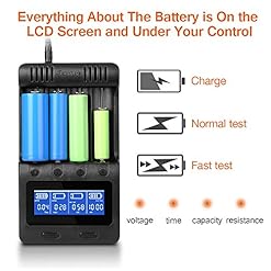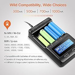 MULTI CHARGE OPTION: 4 different charge current options to choose from (300mA / 500mA / 700mA / 1000mA). 4 slots work independently, you can select and use the three modes ‘CHARGE, FAST TEST and NOR TEST’ simultaneously.